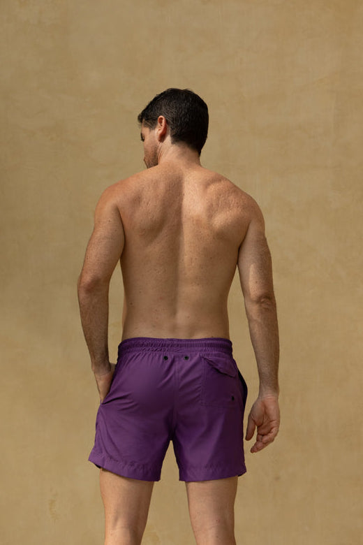La pantaloneta de baño CALI de PLAIA es una declaración de color y actitud. Su tono morado intenso aporta un look fresco y seguro, pensado para quienes viven el verano con personalidad.