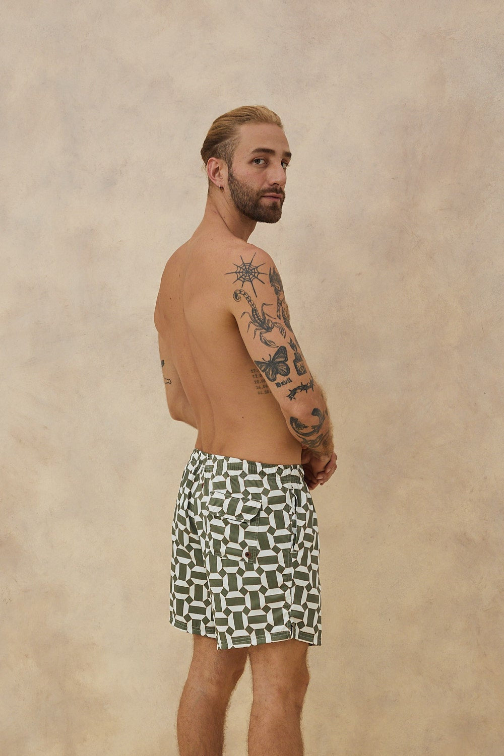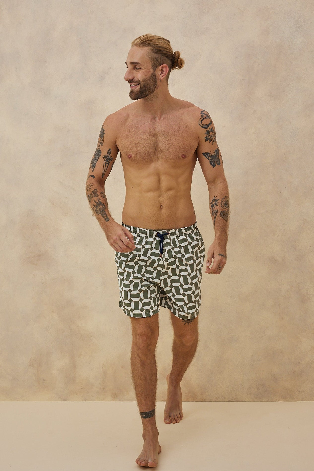 La pantaloneta de baño IBIZA de PLAIA nace como una reinterpretación de uno de nuestros diseños más icónicos: MILOS, nuestro best seller. Mantiene la esencia geométrica que lo convirtió en favorito, pero la reinterpreta con una nueva paleta en tonos verdes y blancos que evocan la energía natural, la arquitectura y el espíritu libre de una de las playas más emblemáticas del Mediterráneo.