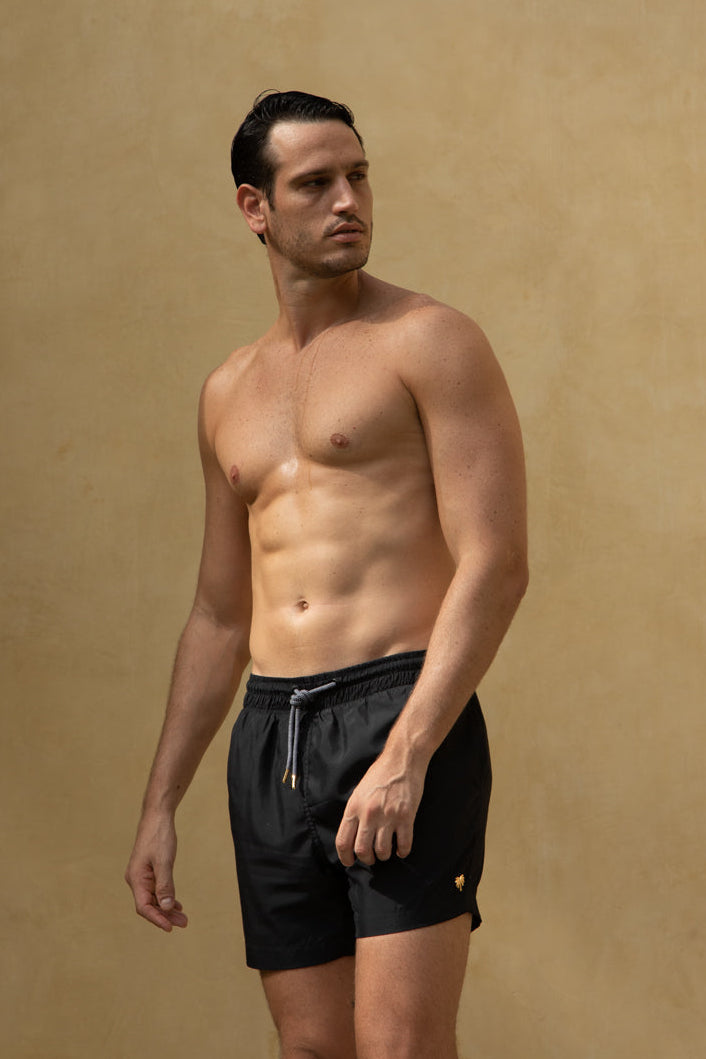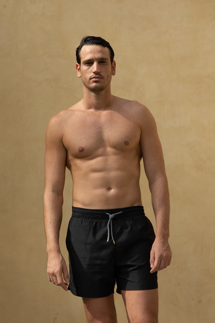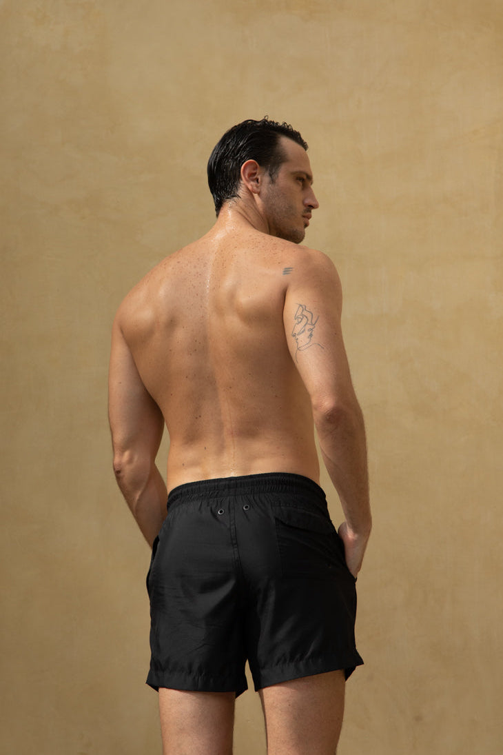 La pantaloneta de baño MAUI de PLAIA es la definición de elegancia sin esfuerzo. Un diseño esencial en color negro profundo, limpio y atemporal, pensado para quienes entienden que el verdadero lujo está en la funcionalidad bien hecha y en los detalles sutiles.